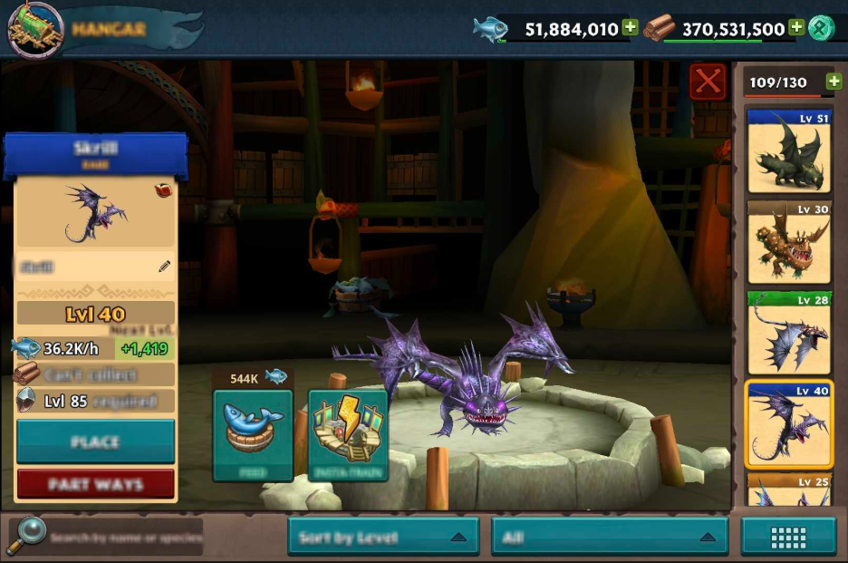 Dragons stored in the Hangar cannot collect resources for you. They can be fed and trained as normal while inside the Hangar but will need to be outside in order to undergo Titan Training. You will also have the option to move them to your Berk or release them if you wish to do so. While the Hangar is full or above capacity, it is not possible to train or feed your Dragon.