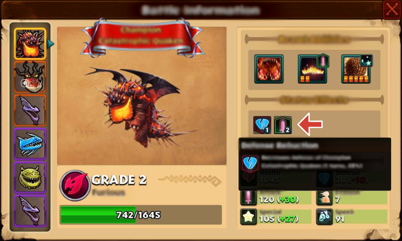 - Select a dragon currently affected by a status effect.