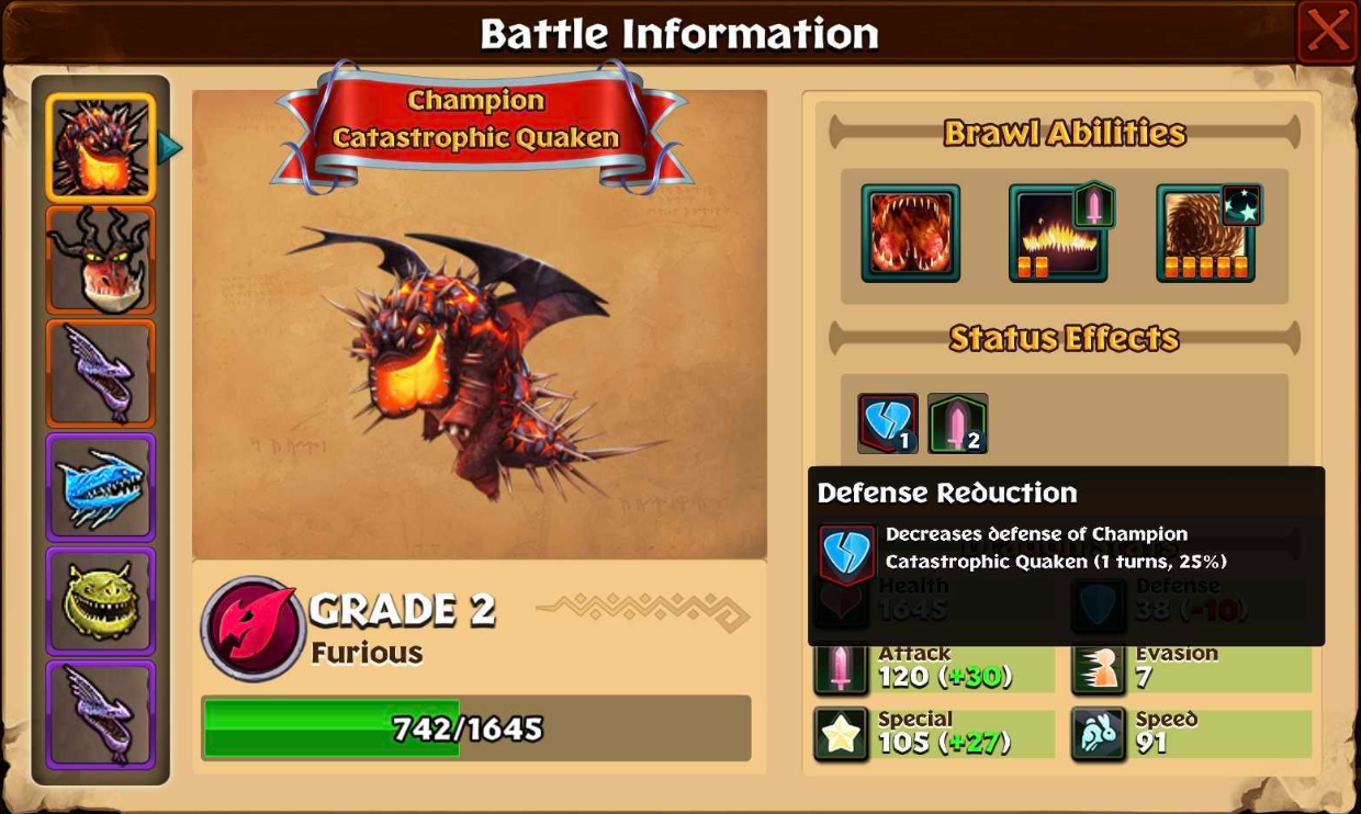In Brawl, the icons above a dragon's health bar are status effects applied to said dragon. These effects can be buffs or debuffs, providing a boost to your dragon or hindering them in some way, respectively. These effects are applied through abilities, whether that be from another dragon or self-applied. Multiple status effects can be applied at once and will all be shown above the dragon's health bar.